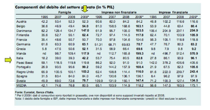 come vedi il debito delle famiglie italiane è passato dal 18,2% del PIL nel 1995 al 42,2 nel 2009 e oggi sicuramente è peggiorato.